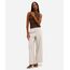 Para um look de trabalho elegante, combine esta calça de linho com uma camisa e sapatos de salto. Se a ocasião for mais descontraída, aposte em uma regata básica, um top cropped ou uma camiseta de algodão e sandálias rasteiras. A versatilidade da peça permite transitar facilmente entre o ambiente profissional e momentos de lazer, tornando-a um item indispensável no guarda-roupa.
