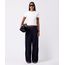calça wide leg feminina com linho e pregas mindset azul