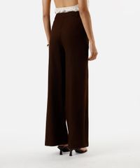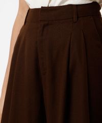 Calça de alfaiataria feminina confeccionada em tecido plano de viscose e linho. A peça tem a modelagem wide leg, com construção reta e o caimento é confortavelmente solto ao corpo. O modelo tem cintura alta, cós com passantes para cinto, pregas frontais e fechamento frontal por botão e zíper. Possui dois bolsos faca na parte frontal e acabamento pespontado nas barras.