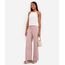 calça wide leg feminina de sarja cintura alta rosa