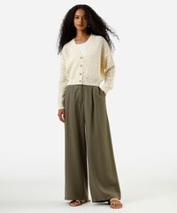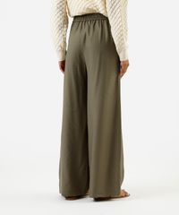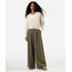 calça wide leg feminina de viscose texturizada verde