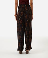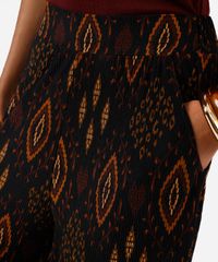 calça wide leg feminina étnica texturizada preta