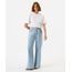 calça wide leg feminina jeans bordado floral azul