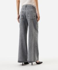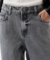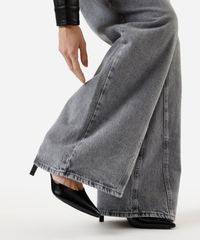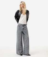 calça wide leg feminina jeans com recorte cintura baixa cinza
