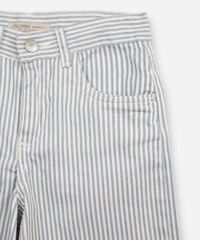 • Design funcional com cinco bolsos e uma charmosa padronagem listrada.
