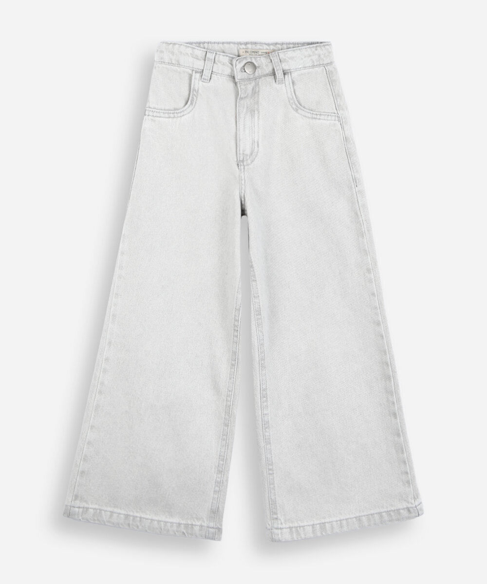 calça wide leg infantil jeans cinza