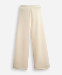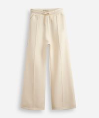 calça wide leg juvenil de moletom com nervura bege