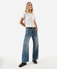 calça wide leg oversized jeans cintura média azul