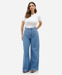 • Modelagem wide leg petit, com pernas amplas e comprimento pensado para mulheres com até 1,65m de altura.