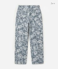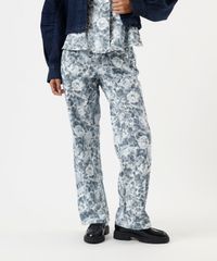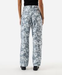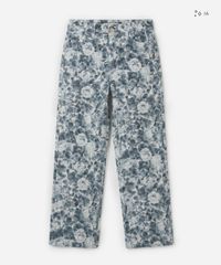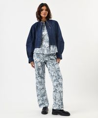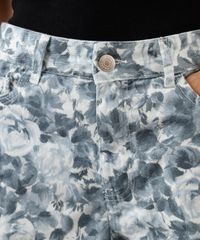 Calça feminina confeccionada em sarja com padronagem floral. A peça tem a modelagem wide leg, com construção reta, caimento solto ao corpo e barras levemente amplas. O modelo tem cintura alta, cós com passantes para cinto e fechamento frontal por botão e zíper. Possui três bolsos na parte frontal e dois aplicados na parte posterior. Detalhe de acabamento pespontado nas barras.