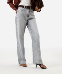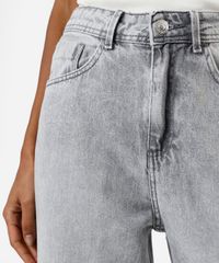 calça wide leg slim feminina jeans cintura alta cinza