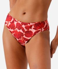 Calcinha biquíni confeccionada em malha com proteção UV com padronagem floral. A peça possui modelo hot pants, cintura alta, cós elástico, laterais largas e forro. Composição: 84% poliamida, 16% elastano Modelo veste: P/38 Medidas da modelo: Altura: 1,80m Busto 79cm Cintura: 60cm Quadril: 89cm Instruções de lavagem: - Lavagem manual - Não alvejar - Não secar em secadora - Secar na vertical - Não passar - Não lavar à seco