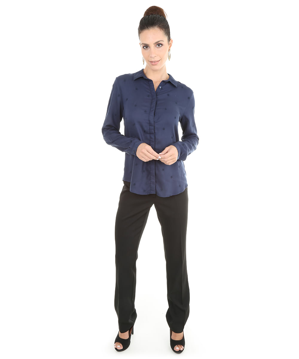 Confeccionada em tecido leve e confortável, essa camisa é ideal para compor looks incríveis. O modelo tem gola esporte, mangas longas e fechamento frontal por botões. Seu principal destaque fica por conta do caimento leve que a peça proporciona, além dos bordados aplicados em toda sua extensão. Um arraso! Combine com calça social e salto.
