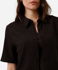 Camisa feminina confeccionada em malha texturizada. A peça tem a modelagem e construção reta e o caimento é confortavelmente solto ao corpo. O modelo tem gola esporte aplicada, fechamento frontal por botões em vista e mangas curtas. Detalhe de acabamento pespontado na barra.