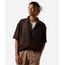 Camisa masculina confeccionada em tricot com tramas espaçadas. A peça tem modelagem box, com construção reta e o caimento é confortavelmente solto ao corpo. O modelo tem gola esporte aplicada, fechamento frontal por botões em vista e mangas curtas.