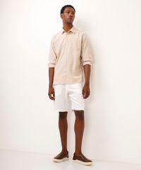 Para um look casual e fresco, combine esta camisa de manga longa com uma bermuda de linho e sandálias. Se a ocasião pede um visual mais alinhado, aposte na combinação com uma calça jeans ou chino de cor neutra e um sapatênis. Ela também funciona perfeitamente como sobreposição, aberta sobre uma camiseta branca básica, criando um visual moderno e descontraído.