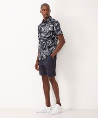 Para um visual despojado, combine esta camisa de botão masculina de manga curta com uma bermuda de sarja e tênis branco. Você pode usá-la aberta com uma camiseta básica por baixo para um estilo mais descontraído, ideal como roupa de praia masculina. Se a ocasião pede um look mais arrumado, use-a fechada com uma calça chino e um sapatênis.