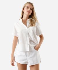 camisa de algodão manga curta com bolso off white