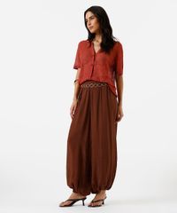 Camisa feminina confeccionada em tricot de viscose e poliamida com tramas espaçadas e transparência. A peça tem a modelagem e construção reta e o caimento é confortavelmente solto ao corpo. O modelo tem gola esporte aplicada, decote V, fechamento frontal por botões em vista e mangas curtas. Detalhe de acabamento canelado nos punhos e na barra.