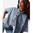 camisa feminina jeans manga curta azul