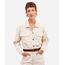 • Possui gola esporte, mangas longas com punhos abotoáveis e fechamento frontal por botões de metal.