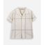 Camisa infantil confeccionada em tecido plano com linho com bordado. A peça tem a modelagem e construção reta e o caimento é confortavelmente solto ao corpo. O modelo tem gola esporte aplicada, fechamento frontal por botões em vista e mangas curtas. Detalhe de acabamento pespontado na barra.