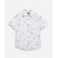Camisa infantil confeccionada em tecido plano de algodão com estampa de coqueiros. A peça tem a modelagem e construção reta e o caimento é confortavelmente solto ao corpo. O modelo tem gola esporte, fechamento frontal por botões em vista, bolso aplicado e mangas curtas.