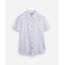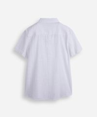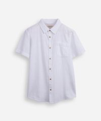 Camisa juvenil confeccionada em tecido plano de algodão texturizado. A peça tem a modelagem e construção reta e o caimento é confortavelmente solto ao corpo. O modelo tem gola esporte, bolso aplicado, fechamento frontal por botões em vista e mangas curtas. Detalhe de acabamento pespontado na barra.