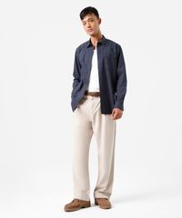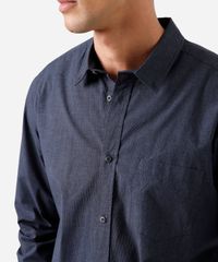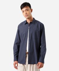 Camisa masculina confeccionada em tecido plano de algodão. A peça tem a modelagem e construção reta e o caimento é confortavelmente solto ao corpo. O modelo tem gola esporte aplicada, fechamento frontal por botões em vista e mangas longas com botão nos punhos. Possui um bolso aplicado e acabamento pespontado na barra.