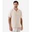 Camisa masculina confeccionada em tecido texturizado de algodão. A peça tem a modelagem e construção reta e o caimento é confortavelmente solto ao corpo. O modelo tem gola esporte aplicada, fechamento frontal por botões em vista e mangas curtas. Detalhe de acabamento pespontado na barra.