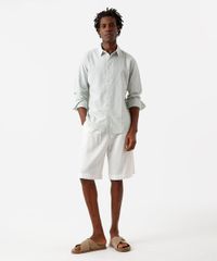 Para um visual descontraído, combine-a com uma calça jeans ou bermuda de sarja. Se a ocasião pedir um toque mais arrumado, use-a com uma calça de alfaiataria e sapatos casuais. Dobrar as mangas é um ótimo truque de estilo para um look mais moderno e relaxado.