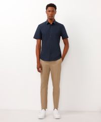 Esta camisa masculina de manga curta é extremamente versátil. Para um look de trabalho moderno, combine-a com uma calça de sarja ou alfaiataria em tons neutros e um sapatênis. Em ocasiões mais descontraídas, como um passeio no fim de semana, ela fica ótima com uma calça jeans ou uma bermuda. É uma peça-chave que transita facilmente entre o formal e o casual.