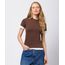 camiseta baby tee feminina de algodão com sobreposição mindset marrom