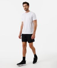 Camiseta masculina confeccionada em tecido sintético de alta performance e absorção com toque texturizado. Possui modelagem reta, caimento solto e confortável, mangas curtas e acabamento pespontado.