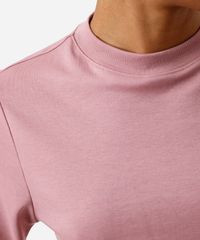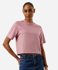 Esta camiseta feminina une o conforto de uma peça básica com um toque de sofisticação. Confeccionada em algodão peruano, seu toque é extremamente macio e o caimento, fluido e elegante. Com um design moderno de comprimento cropped, esta blusa feminina é perfeita para criar looks versáteis que vão do casual ao elegante sem esforço.