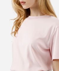 camiseta básica feminina de algodão peruano oversized com fendas rosa