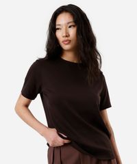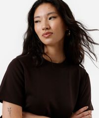 camiseta classic feminina de algodão peruano interlock marrom