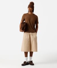 • Decote redondo clássico com acabamento canelado e mangas curtas, um design atemporal e fácil de combinar.