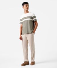 camiseta comfort texturizada listrada manga curta verde
