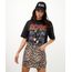 Camiseta confeccionada em malha macia de algodão. Modelo com caimento reto, estampa com tema da banda Ac/Dc, gola redonda, mangas curtas e barra pespontada.