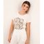 Camiseta feminina confeccionada em malha macia de algodão com estampa localizada de animal print metalizado na parte frontal. A peça tem modelagem reta e caimento solto ao corpo. O modelo tem gola careca em malha com textura canelada e mangas curtas.