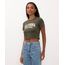 Camiseta confeccionada em malha de algodão macia. Modelo com caimento reto, decote redondo, mangas curtas, estampa de escrita Califórnia com acabamento flocado, confere toque aveludado e barra pespontada.