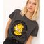 Camiseta confeccionada em malha de algodão. Modelo com caimento reto, estampa frontal do Garfield com nó frontal, gola redonda, mangas curtas e barra pespontada.