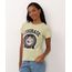 Camiseta confeccionada em malha de algodão. Modelo com caimento reto, decote redondo, mangas curtas, estampa frontal com tema do Courage o cão covarde, acabamento flocado, confere toque aveludado e barra pespontada.