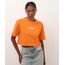 Camiseta confeccionada em malha de algodão com toque macio. A peça possui modelagem cropped com caimento solto, decote redondo canelado, mangas curtas, estampa frontal com escrita "manhattan/ new york society" e acabamento pespontada.