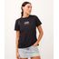 Camiseta feminina confeccionada em malha de algodão com toque macio. A peça possui modelagem reta com caimento solto, decote redondo canelado, mangas curtas, estampa frontal com desenho de gatinho e escrita "exhausted running club" em cor contrastante e acabamento pespontado.