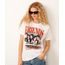 Camiseta feminina confeccionada em malha macia de algodão com estampa localizada de Friends. A peça tem modelagem reta e caimento solto ao corpo. O modelo tem gola careca e mangas curtas.