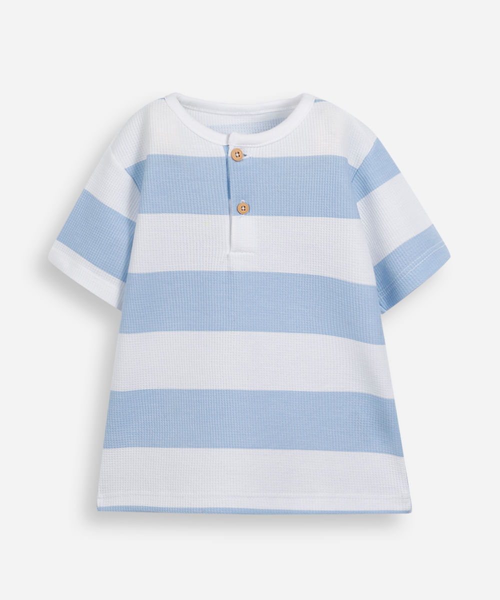 Esta camiseta infantil é a escolha perfeita para vestir seu bebê com muito conforto e estilo. Confeccionada em malha de algodão com um toque macio, a peça é ideal para a pele sensível dos pequenos, garantindo bem-estar durante todo o dia. Seu design listrado e texturizado é versátil e charmoso, perfeito para compor diversos looks fofos e práticos.