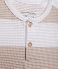 Esta camiseta infantil é a escolha perfeita para vestir seu bebê com muito conforto e estilo. Confeccionada em malha de algodão com um toque macio, a peça é ideal para a pele sensível dos pequenos, garantindo bem-estar durante todo o dia. Seu design listrado e texturizado é versátil e charmoso, perfeito para compor diversos looks fofos e práticos.