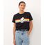 Camiseta confeccionada em malha de algodão com toque macio. A peça possui modelagem reta com caimento solto, decote redondo canelado, mangas curtas, estampa frontal com desenho do personagem Snoopy e cores do arco-íris, acabamento pespontado.